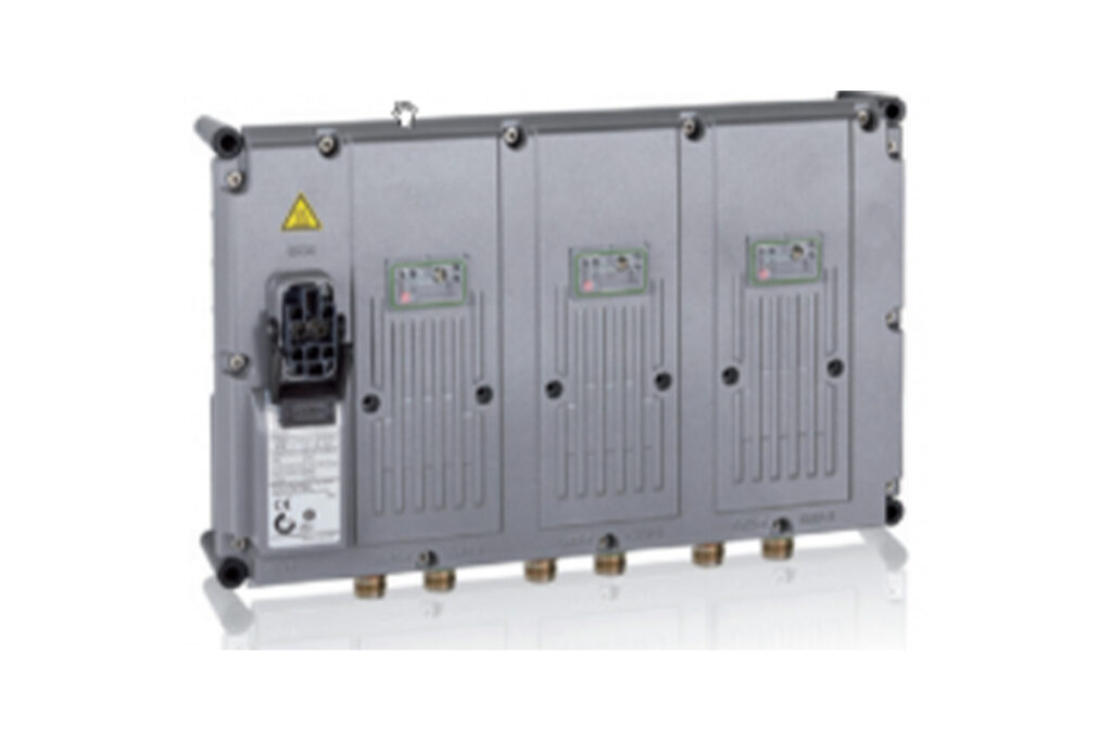 - Requiere hasta un 90 % menos de espacio en el armario de control en comparación con los variadores independientes